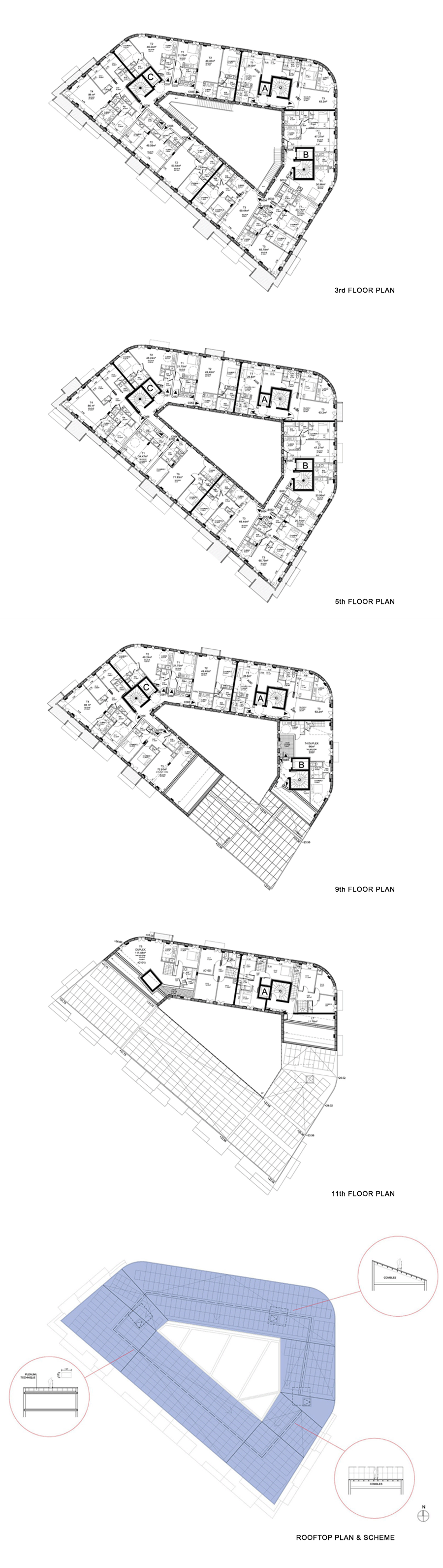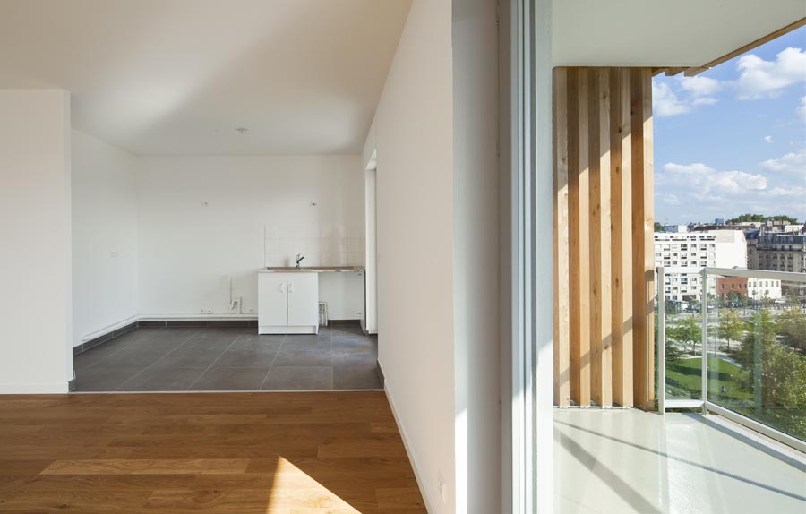 Our building is ring shaped around a vast and luminous yard. All the appartments therefore enjoy a double exposition. The exterior and enterior envelopes have light thick facades that allows to reduce thermal bridges as well as to integrate an important insulating layer.