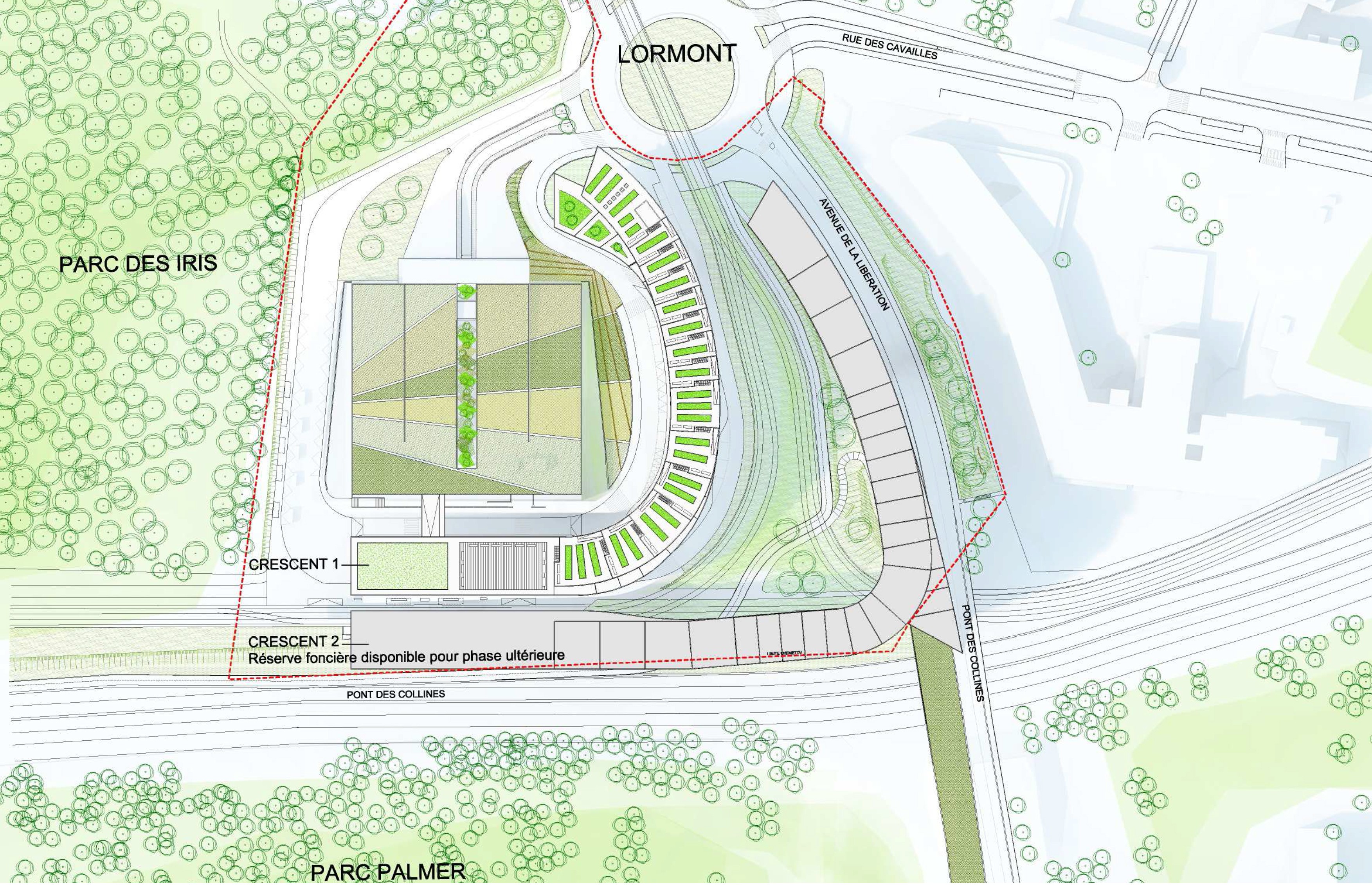 En partant de ce préambule, cumulé à la nécessité évidente de tirer parti des vues sur l’agglomération Bordelaise, un projet icône est né dont les formes du site ont naturellement définies deux emprises courbes montantes et descendantes au gré du contexte pour accueillir des logements : les Crescents.